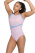 Rosali short sleeve leotard has a fresh, easy look with a pale pink lycra body that’s fully lined for comfort. One side features a morandi blue and pale pink sublimated panel, paired with a morandi blue applique at the waist for a clean asymmetric shape. The morandi blue binding around the neck and armholes ties everything together, and the racer-style neckline with cross-over straps gives it that sporty edge. The open back adds a little extra drama. The stonework is simple but striking, with AB and standard stones arranged in diagonal lines from the waist and neckline, meeting toward the centre to create a soft, eye-catching focus. Cute, sporty, and just the right level of sparkle.