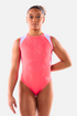 The Destiny leotard, designed by Tumbling British Champion Megan Kealy, is a bold and energetic design that combines modern style with high-performance functionality. Made from vibrant coral lycra, it features white mesh side panels, shoulders, and back, adding a sleek and breathable touch. The high neck design offers both a sophisticated and secure fit, while the clasp closure ensures easy dressing. A circular cut-out at the back creates a unique and eye-catching element, enhancing the overall design. The true standout of the Destiny leotard is the stunning stonework—standard and AB stones are used to create a beautiful geometric pattern of zigzags, lines, and dots across the bodice, adding sparkle and depth. This leotard combines style and performance, making it a must-have for any gymnast.