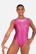 The Rosetta leotard, designed by Olympian Alice Kinsella, is the epitome of refined elegance and regal beauty. Crafted in antique pink wet-look lycra, this leotard exudes sophistication with a luxurious sheen. The bodice features a subtle sweetheart effect, created by antique pink and white sublimated mesh shoulder panels that gracefully frame the upper body. A V-shaped front neckline adds a modern touch, while the circular cut-out on the back with a clasp closure enhances both style and comfort. The stonework is nothing short of breathtaking, standard, AB, and boat stones form a regal pattern that cascades across the bodice, creating a dazzling effect under the lights. Designed for gymnasts who appreciate both elegance and performance, Rosetta is a timeless statement piece, perfect for standing out during training.