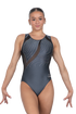 The Astral leotard, designed by Olympian Georgia-Mae Fenton, is the perfect combination of edgy, modern, and bold design. Made from grey wet-look lycra, this leotard offers a sleek, sophisticated finish that catches the light. Black mesh panels on the sides, front, and back are strategically placed in a body-contouring shape to enhance the silhouette and provide breathability. The round neckline at both the front and back offers comfort, while the stunning stonework, featuring standard and AB stones, forms a wavy pattern across the bodice, adding a dynamic sparkle. Perfect for gymnasts who want a standout look, the Astral leotard combines performance with cutting-edge style.