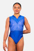 The Couture leotard, designed for elite French gymnast Celia Serber, is a true masterpiece that radiates elegance, sophistication, and unparalleled craftsmanship. Created specifically for the French National Championships, this stunning leotard is a perfect blend of timeless beauty and modern design. Crafted with a luxurious royal blue lycra body and shoulders, this leotard features a royal blue mesh bodice that creates a graceful sweetheart silhouette. A modern collar-style neckline enhances the design at the front, which exudes a sense of refined class and elevates the overall look, while the high neck at the back, finished with a discreet invisible zip, contributes to a sleek, polished appearance. Adorned with standard and AB stones in a mesmerising swirling pattern, the Couture leotard is the epitome of delicate beauty and elite performance.