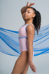 - Pale pink lycra body, white lined
